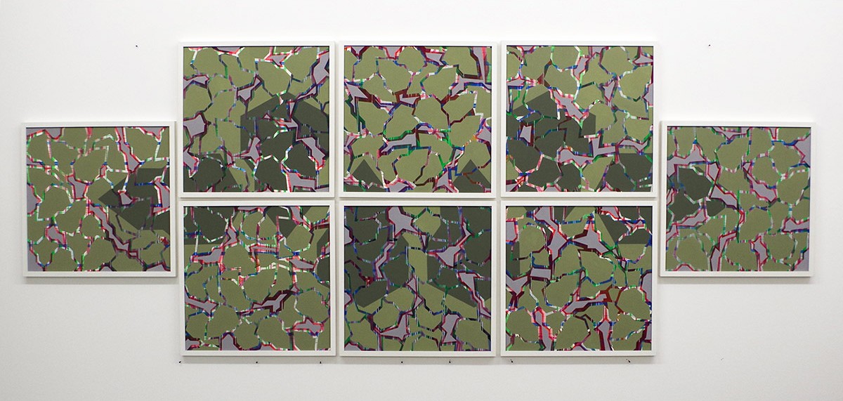 ohne Titel, 2023, Acryl auf Nessel, 8-teilig, 95 x 242 cm