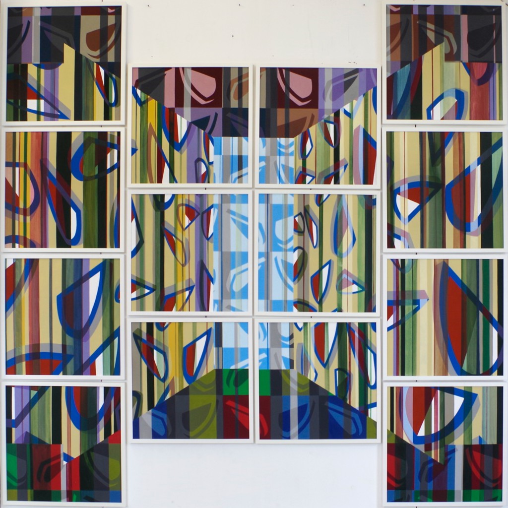 ohne Titel 2021, Acryl auf Nessel, 14-teilig, 191 x 191 cm